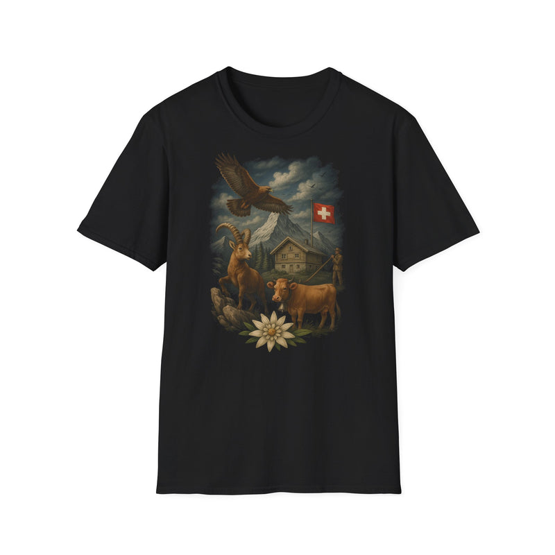 Ob auf dem Gipfel oder dem Wanderweg – dieses Shirt zeigt deine Liebe zu den Bergen und der Schweiz. Weicher Stoff, klarer Schnitt, starkes Motiv mit Schweizerflagge.